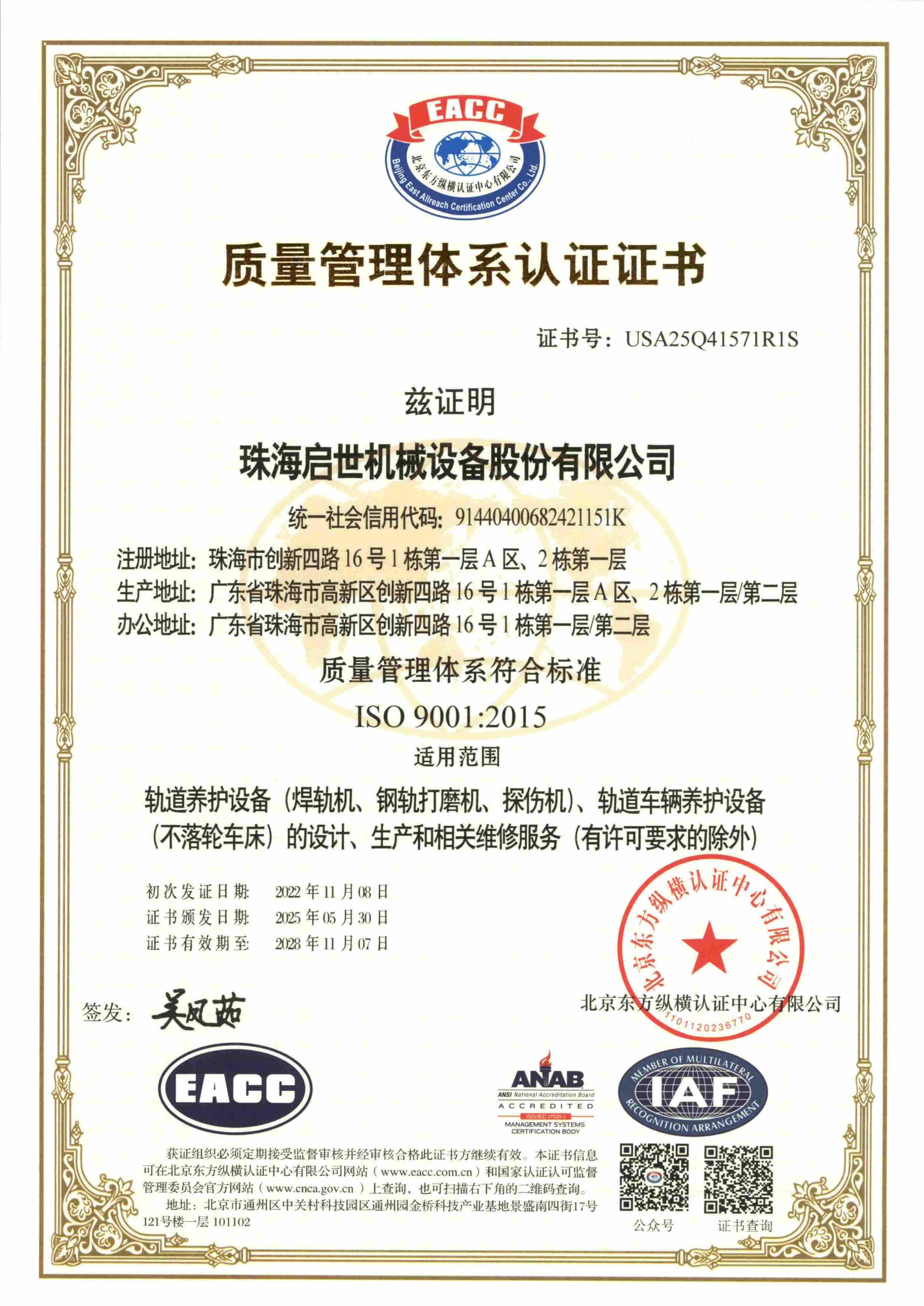 質量管理體系認證證書